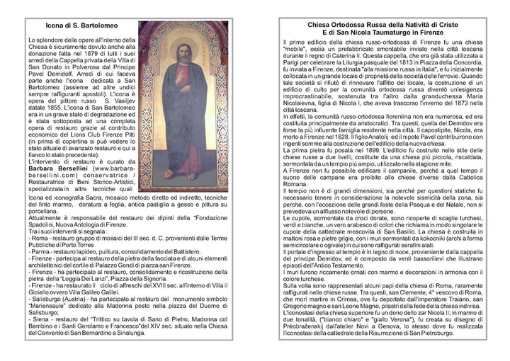 Nell’occasione è stata presentata l’icona, raffigurante S. Bartolomeo, restituita a nuova vita dal sapiente restauro curato da Barbara Bersellini, esperta nel restauro di beni